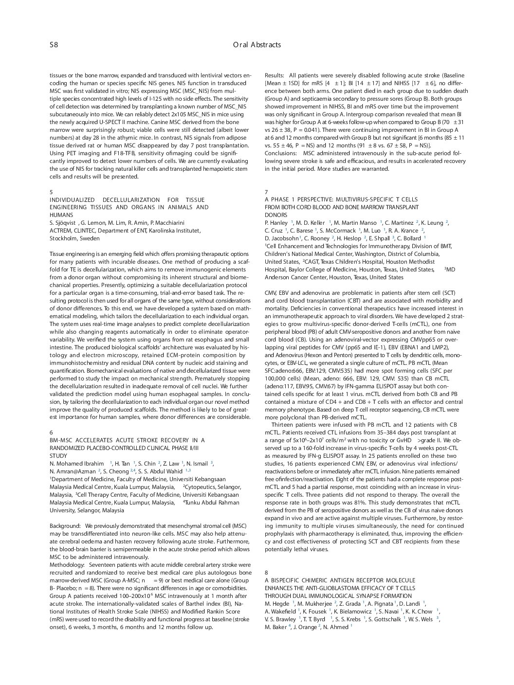 Mesenchymal Stromal Cell – Ischemic Cardiomyopathy, Multiple Myeloma