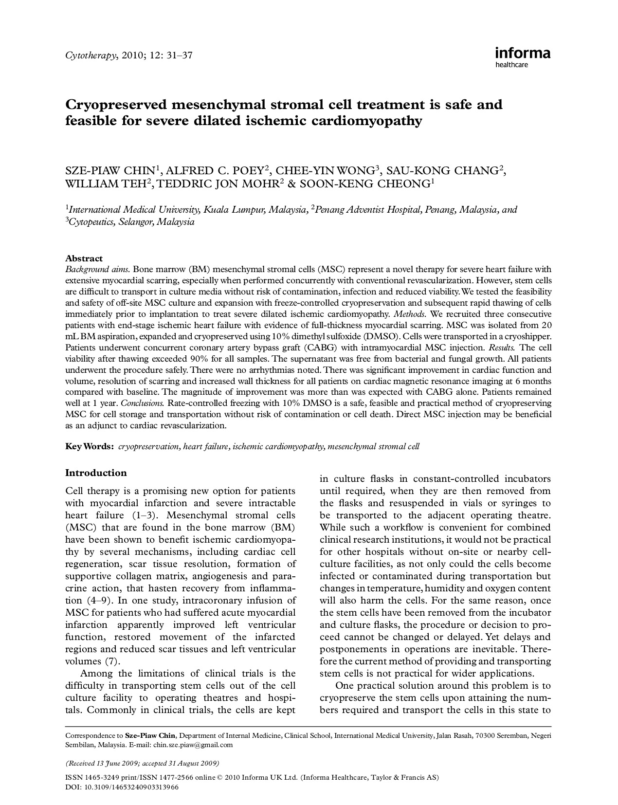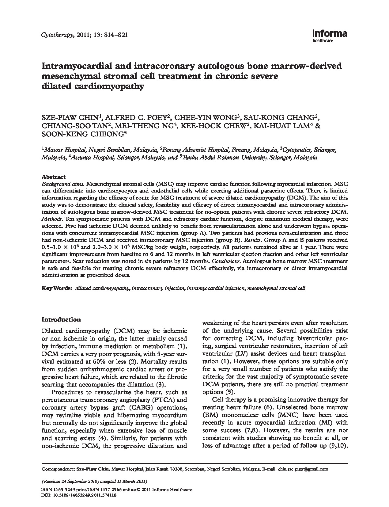 Mesenchymal Stromal Cell – Ischemic Cardiomyopathy