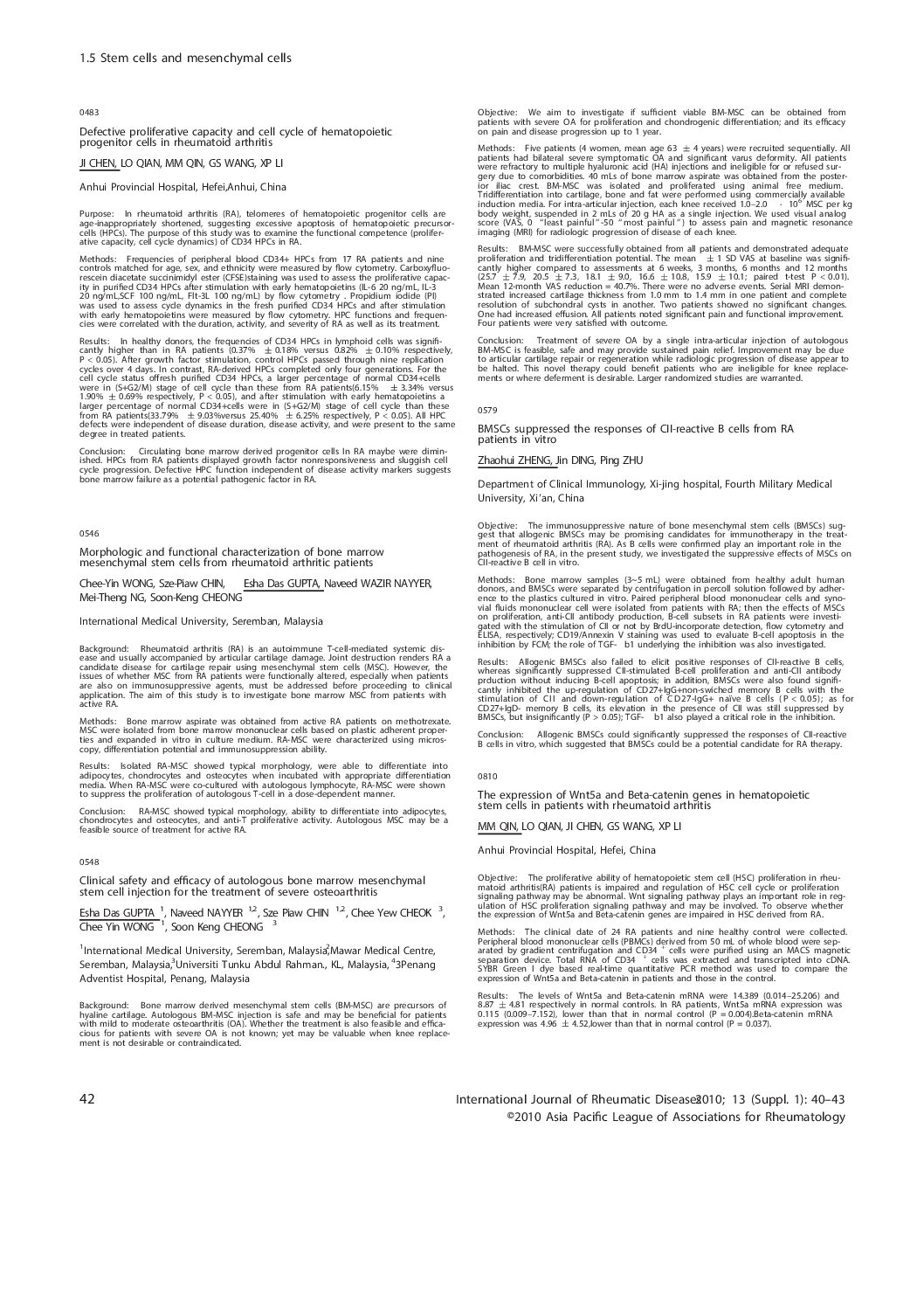 Mesenchymal Stem Cells – Rheumatoid Arthritis, Osteoarthritis