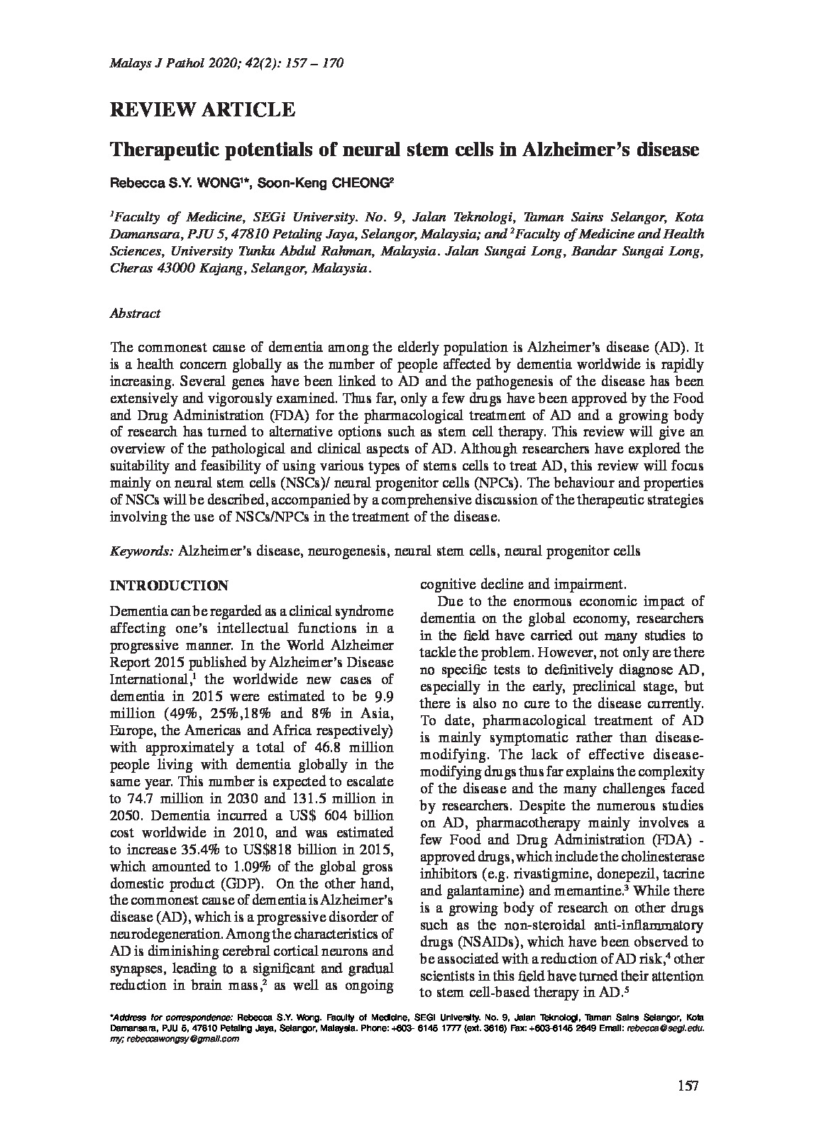 Therapeutic Potentials of Neural Stem Cells in Alzheimer’s Disease