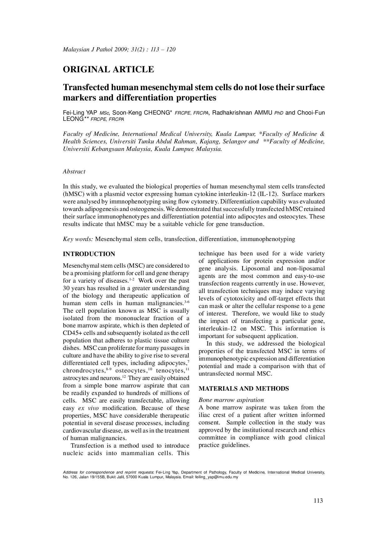 Transfected Human Mesenchymal Stem Cells Do Not Lose Their Surface Markers and Differentiation Properties