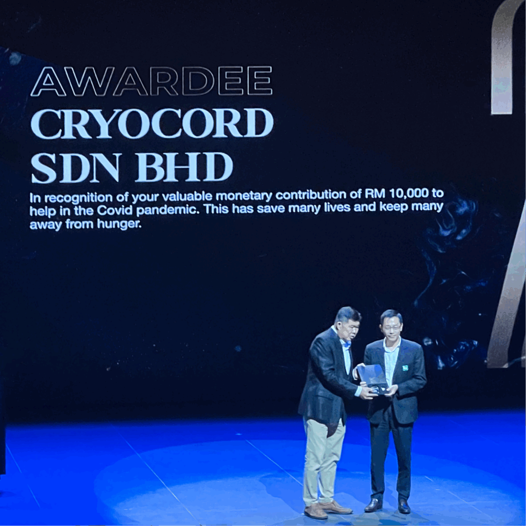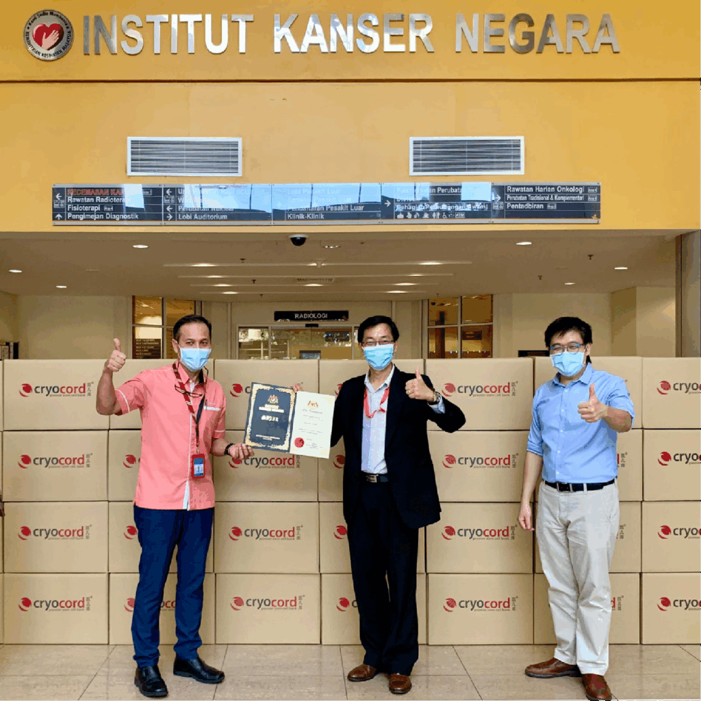 CryoCord berbangga bekerjasama dengan Institut Kanser Negara, Malaysia, ikut berpartisipasi aktif melawan pandemi Covid-19. CryoCord mendonasikan sebanyak 10.000 masker wajah, 1.000 gaun operasi, dan 900 masker wajah KN95 untuk para tenaga di garda terdepan. Mr James Then––Presiden Direktur CryoCord menyerahkan langsung kepada Direktur Institut Kanser Negara, Dr. Mohd Anis bin Haron.